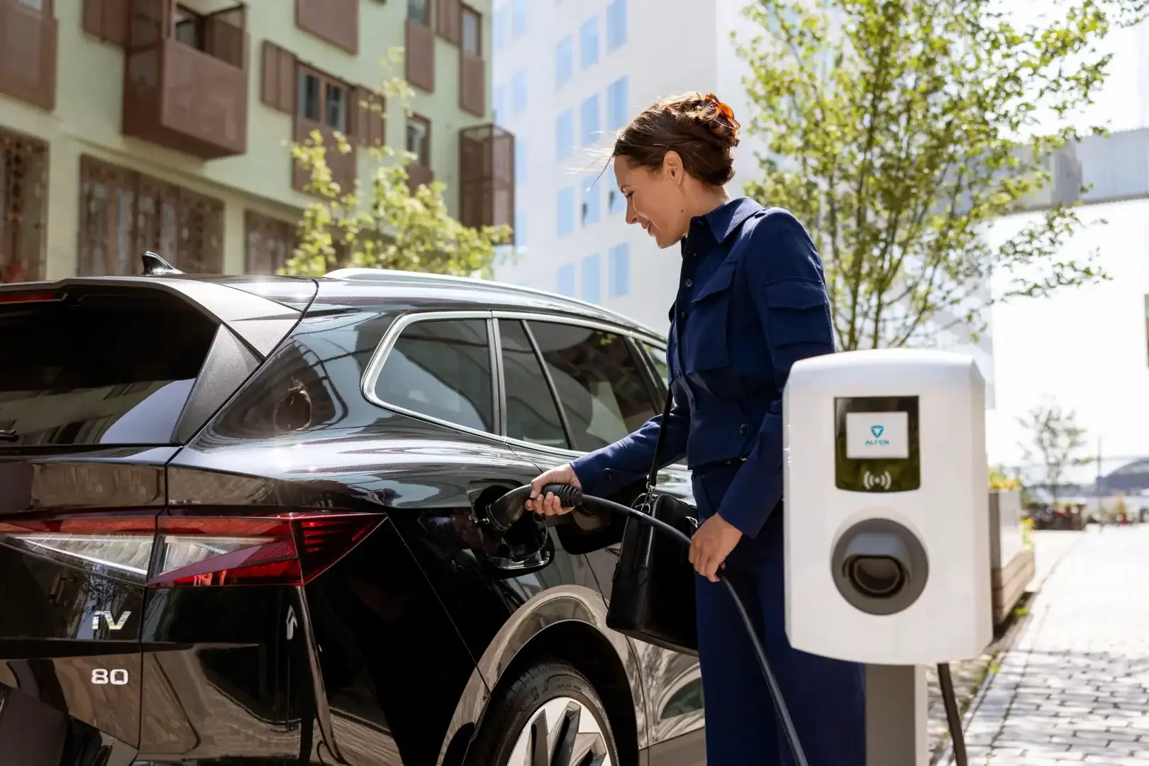 Alfen Eve Single Pro-line 22 kW to inteligentna stacja ładowania ze zintegrowanym kablem Typ 2, oferująca szybkie i bezpieczne ładowanie pojazdów elektrycznych w domu i w firmie.