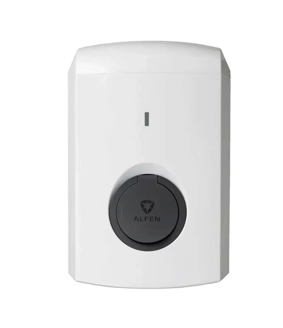 Alfen Eve Single S-line 22 kW z gniazdem Typ 2 to inteligentna stacja ładowania, oferująca szybkie i bezpieczne ładowanie pojazdów elektrycznych w domu.